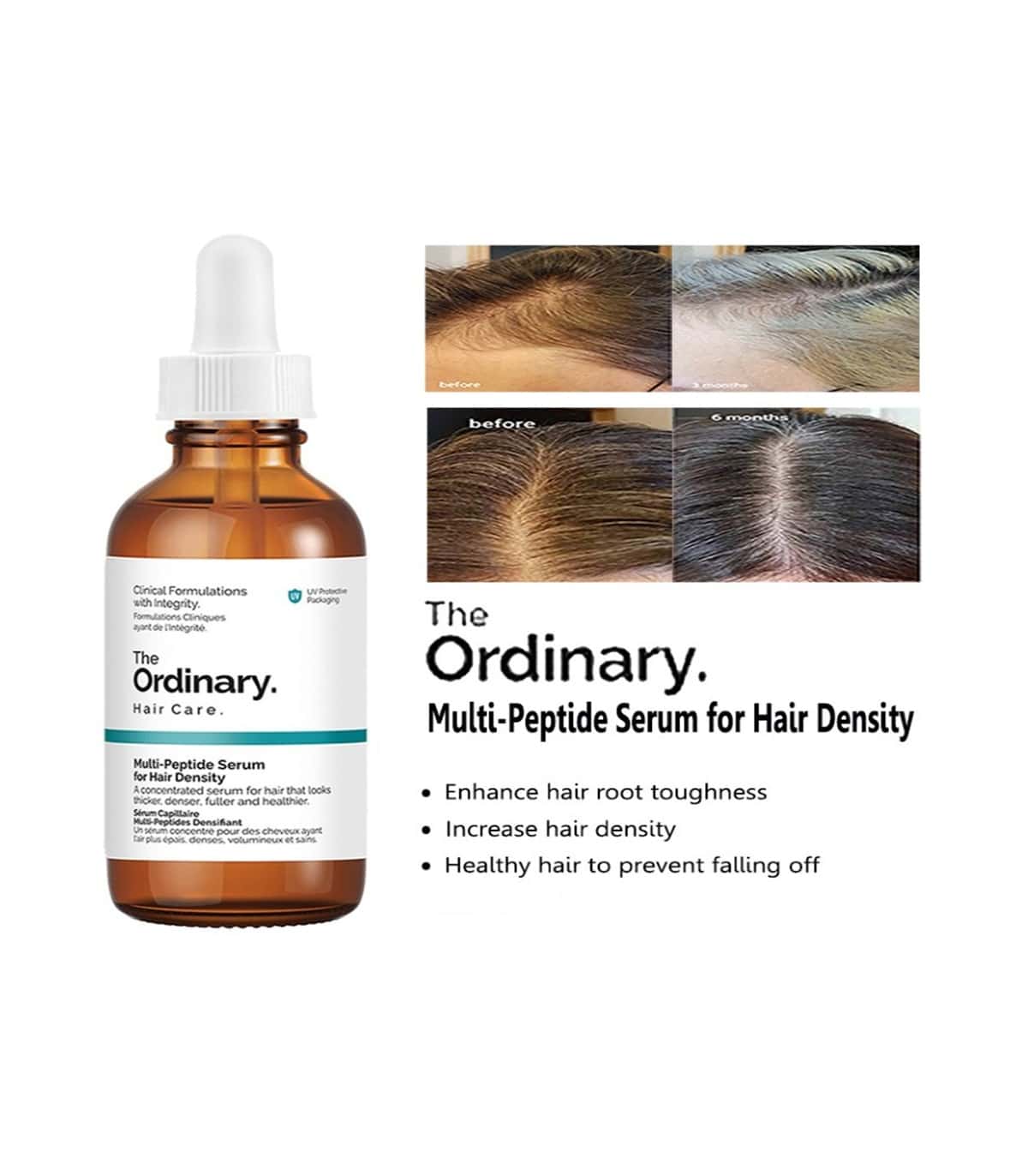 سرم ضد ریزش مو اوردینری، بافت غلیظ اما سبک دارد که بهراحتی جذب مو و پوست سر میشود و با تغذیه فولیکولهای مو بهطور عمقی ریزش مو را قطع و رشد مجدد موها را فعال می کند. پس اگر بهدنبال افزایش تراکم موی سر خود هستید و همچنین میخواهید ضخامت تار موهایتان افزایش پیدا کند، مصرف سرم مولتی پپتید اوردینری با PH 4.75- 5.75 میتواند به شما در رسیدن به هدفتان کمک کند.