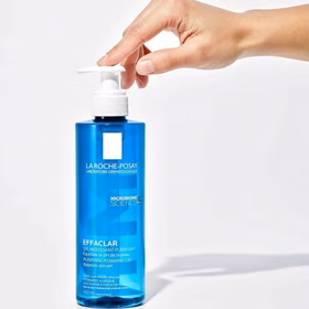 ژل Effaclar بهخوبی آلودگیها و چربیهای اضافی را از سطح پوست پاک میکند و به پوست احساس تمیزی و تازگی میبخشد. -