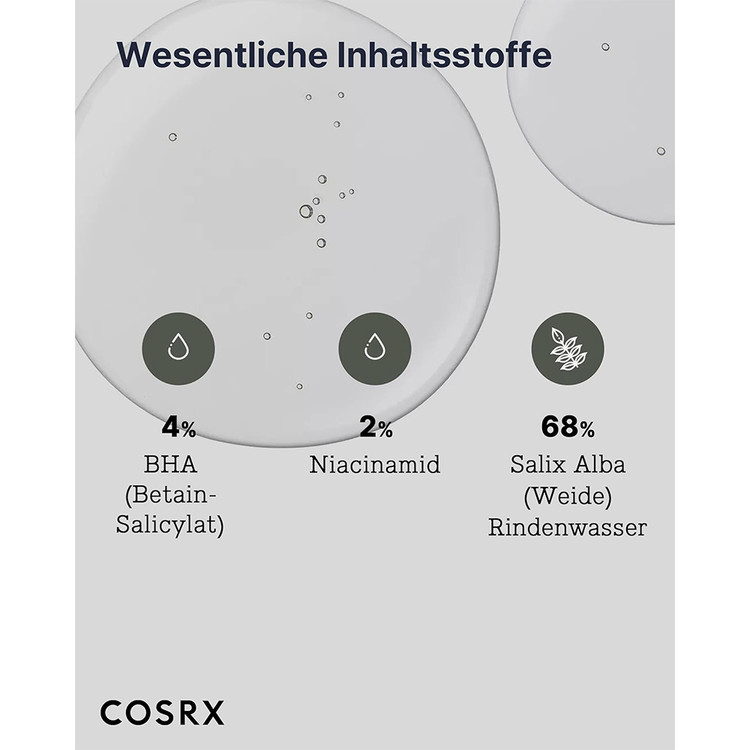 67.8% عصاره پوست بید (سالیکس آلبا) + 4% بتائین سالیسیلات: منافذ مسدود شده را پاک می کند و رنگ و بافت پوست را بهبود می بخشد.